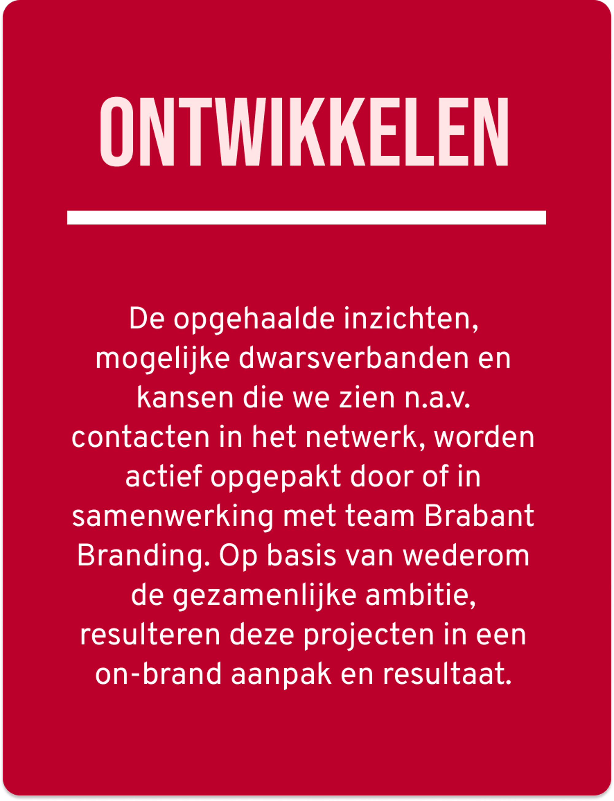 Door een stevig netwerk met een gezamenlijke ambitie en belang, dragen we bij aan een sterke, toekomstbestendige reputatie van de regio Brabant.