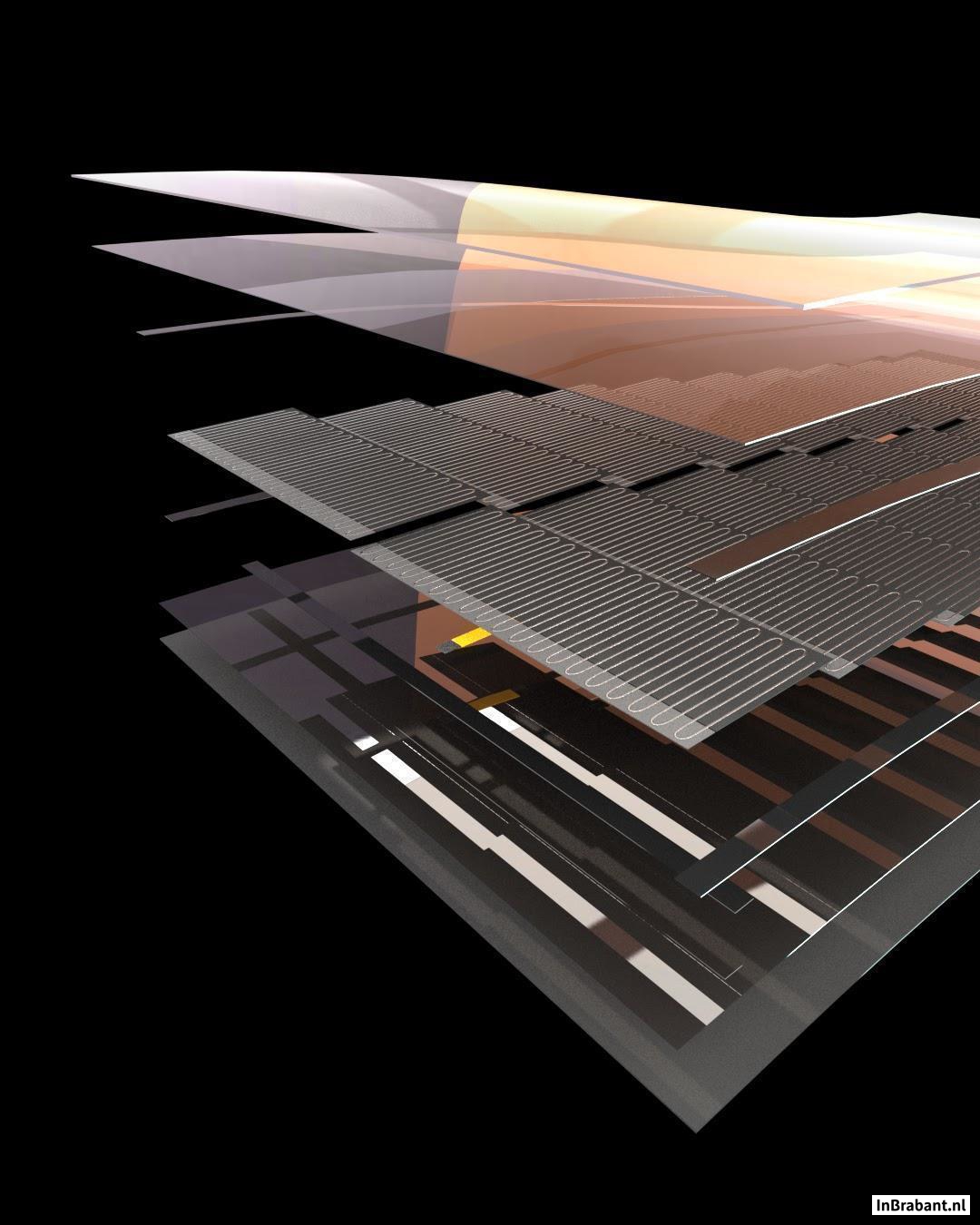 Sie wandten sich daher an die TNO, die gemeinsam mit Partnern aus der Industrie und Universitäten Forschung nach der Solartechnologie der Zukunft betreibt. Seit 2010 arbeitet diese am High Tech Campus in Eindhoven gemeinsam mit anderen Partnern von Solliance an der Entwicklung eines Halbfabrikats mit Solarzellen. Diese anderen Partner sind das belgische Forschungszentrum für Nano- und Mikroelektronik imec sowie das ECN, das niederländische Energieforschungszentrum, das inzwischen in die TNO aufgenommen wurde. Und das mit Erfolg, denn dies führte zur Entwicklung der flexiblen Folie.
